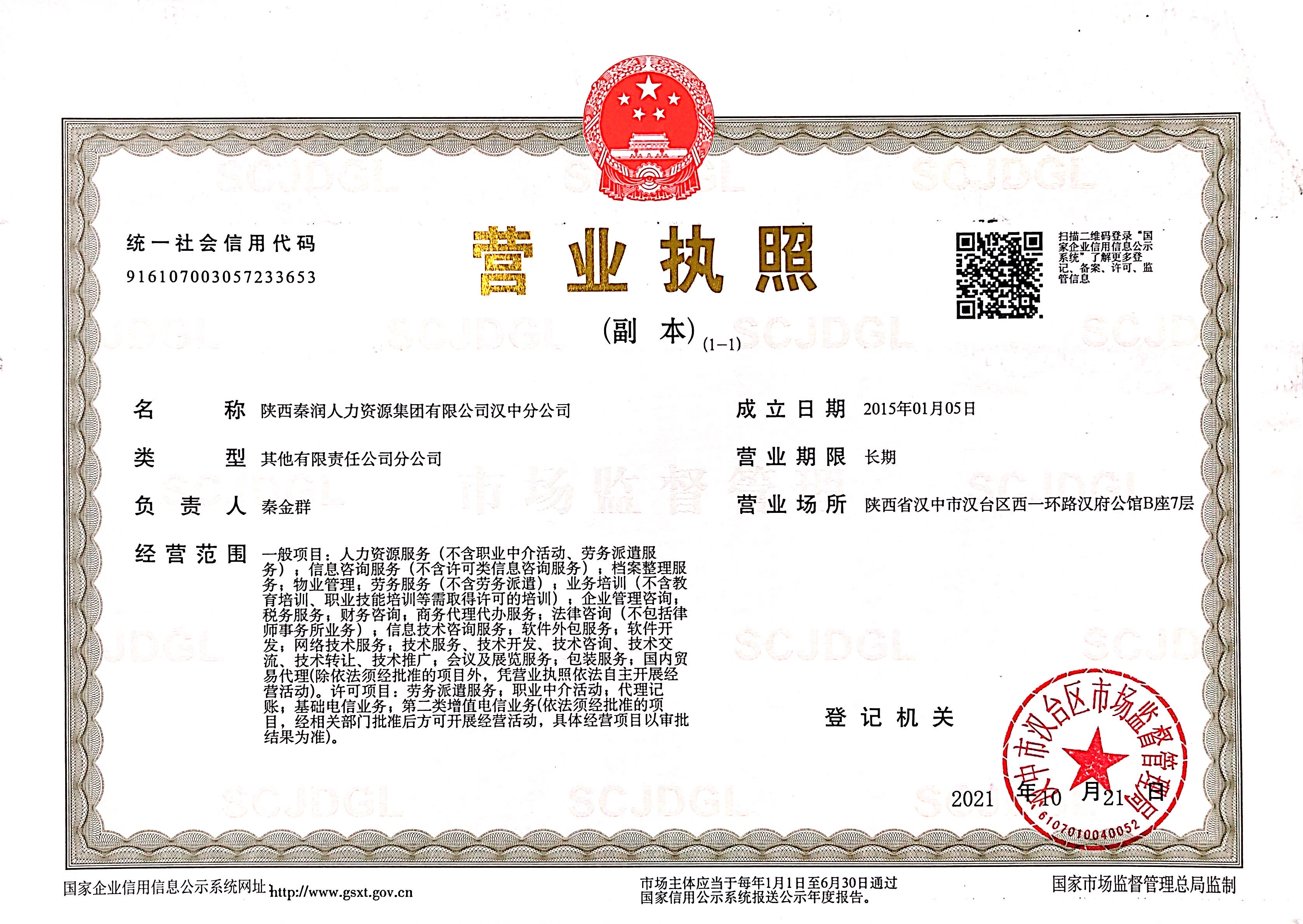 陜西秦潤(rùn)人力漢中分公...