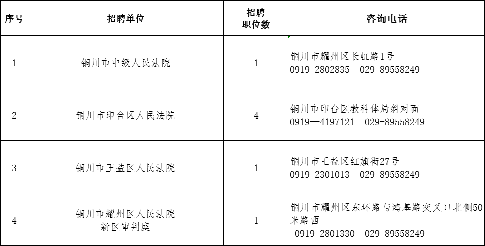 銅川法院2024年度面向社會(huì)公開招聘聘用制司法輔助人員職位表