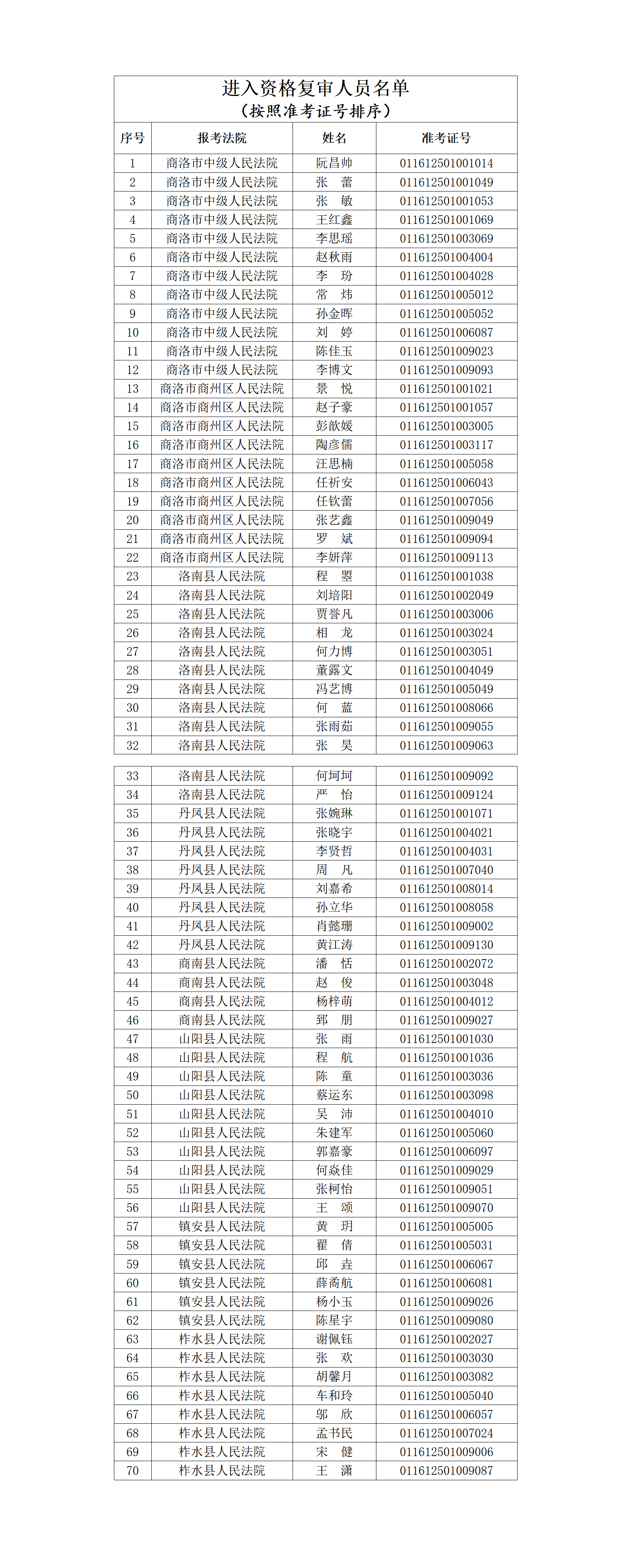 參加資格復(fù)審人員以所報考法院的考生綜合成績排名及招聘計劃2倍的比例,由高到低確定(進(jìn)入資格復(fù)審人員名單詳見附件)。